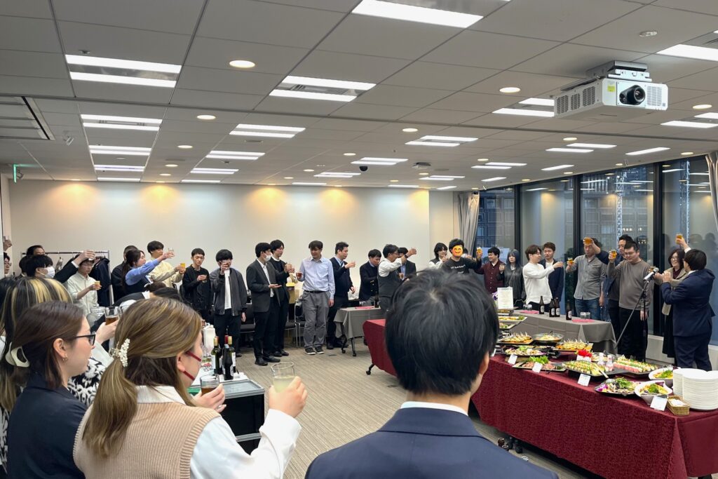 新しい仲間である新入社員も加わり、今期への想いを共有してチームの結束を深める目的で、乾杯!